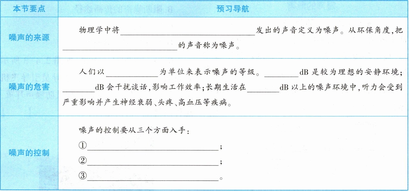 4. (★★)你正在上物理课,有什么噪声在影响你上课呢?请举例,并说明减弱噪声的方法。