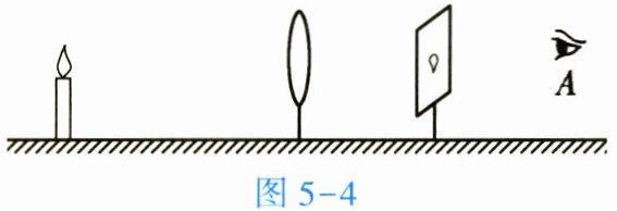6. 如图 5 - 4 所示,在“探究凸透镜成像规律”的实验中,我们通过光屏能看到倒立的实像,如果没有光屏,该实像______(填“能”或“不能”)看到,原因是______。