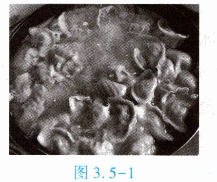 4. 在煮饺子(图3.5-1)时会观察到____和____现象。煮熟饺子是需要一定时间的。虽然加大火力可以加快水的沸腾,但是水沸腾后仍然大火加热并不会使饺子更快煮熟。这是因为水在沸腾后温度保持____,继续使用大火只会加速水的汽化,浪费水和燃料。因此,在水沸腾后,应将大火改为____。