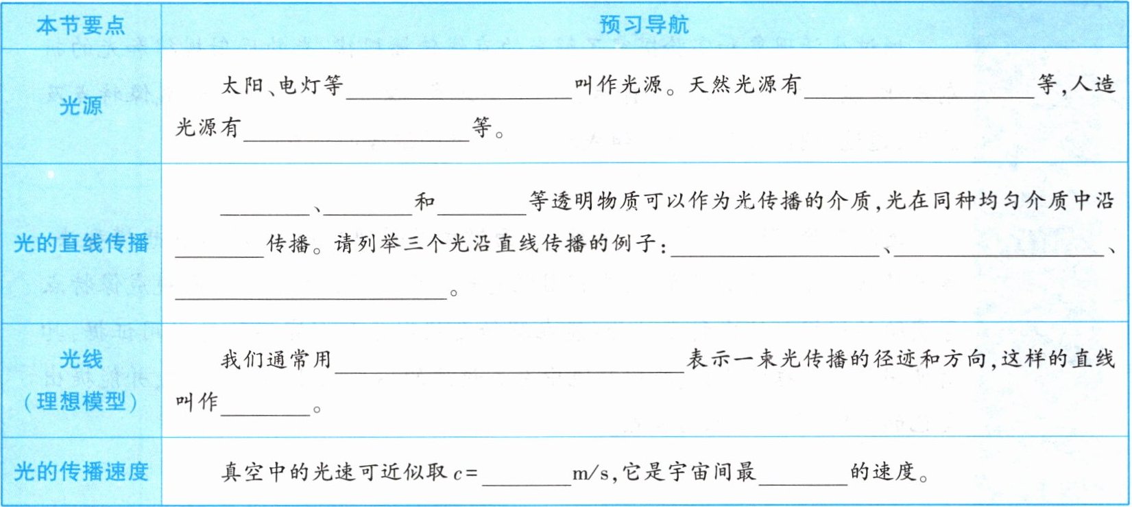 |光源|太阳、电灯等______叫作光源。天然光源有______等,人造光源有______等。|