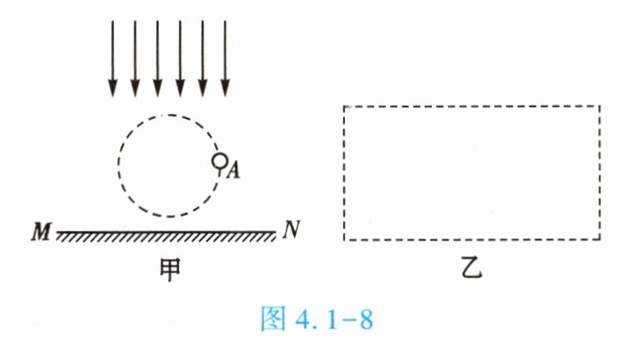 6. (★★★)如图4.1-8甲所示,一束平行光垂直水平地面MN射下,A为小铁球。