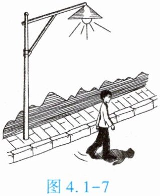 5. (★★★)晚上,当你由远及近从一路灯下经过、再走远时,如图4.1-7所示,你的影子的长短变化是【 】