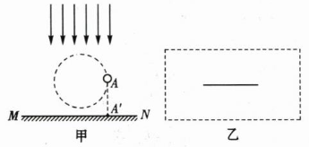 (1)标出小铁球A在图甲中位置时,其影子$ A' $在地面MN上的位置(用点表示即可);