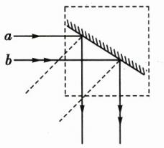 5. (★★★)如图4.2-7所示,已知一束光的一条边缘光线$a$的传播光路,请在虚线框内画出平面镜,并根据光的反射定律作出另一条边缘光线$b$的传播光路。