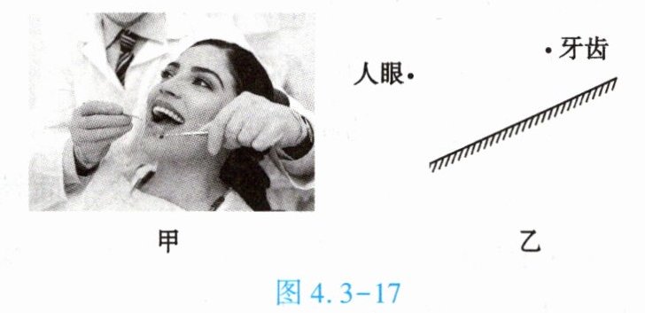 7. (★★)如图4.3-17甲,牙医借助平面镜观察牙齿的背面,请在图4.3-17乙中画出能反映此过程的光路图。