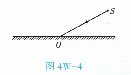 4. ($★★$)(2023·广东)如图 4W - 4 所示,点光源 $ S $发出的一束光射向平面镜 $ O $点,请画出反射光线(保留作图痕迹)。
