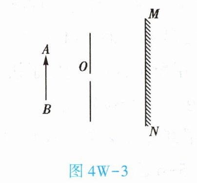 3. ($★★$)请在图 4W - 3 中画出蜡烛 $ AB $经小孔所成像的光路及其在光屏 $ MN $上所成的像 $ A'B' $。