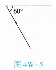 5. ($★★★$)如图 4W - 5 所示,一束光线与水平方向成 $ 60^{\circ} $角,请你放置一块平面镜使它的传播方向变为水平向右,画出平面镜的位置,并标出反射角的度数。