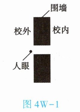 1. ($★★$)在图 4W - 1 中画出小明同学在校外通过学校围墙的小洞观看到校内的范围(围墙及小洞如图所示)