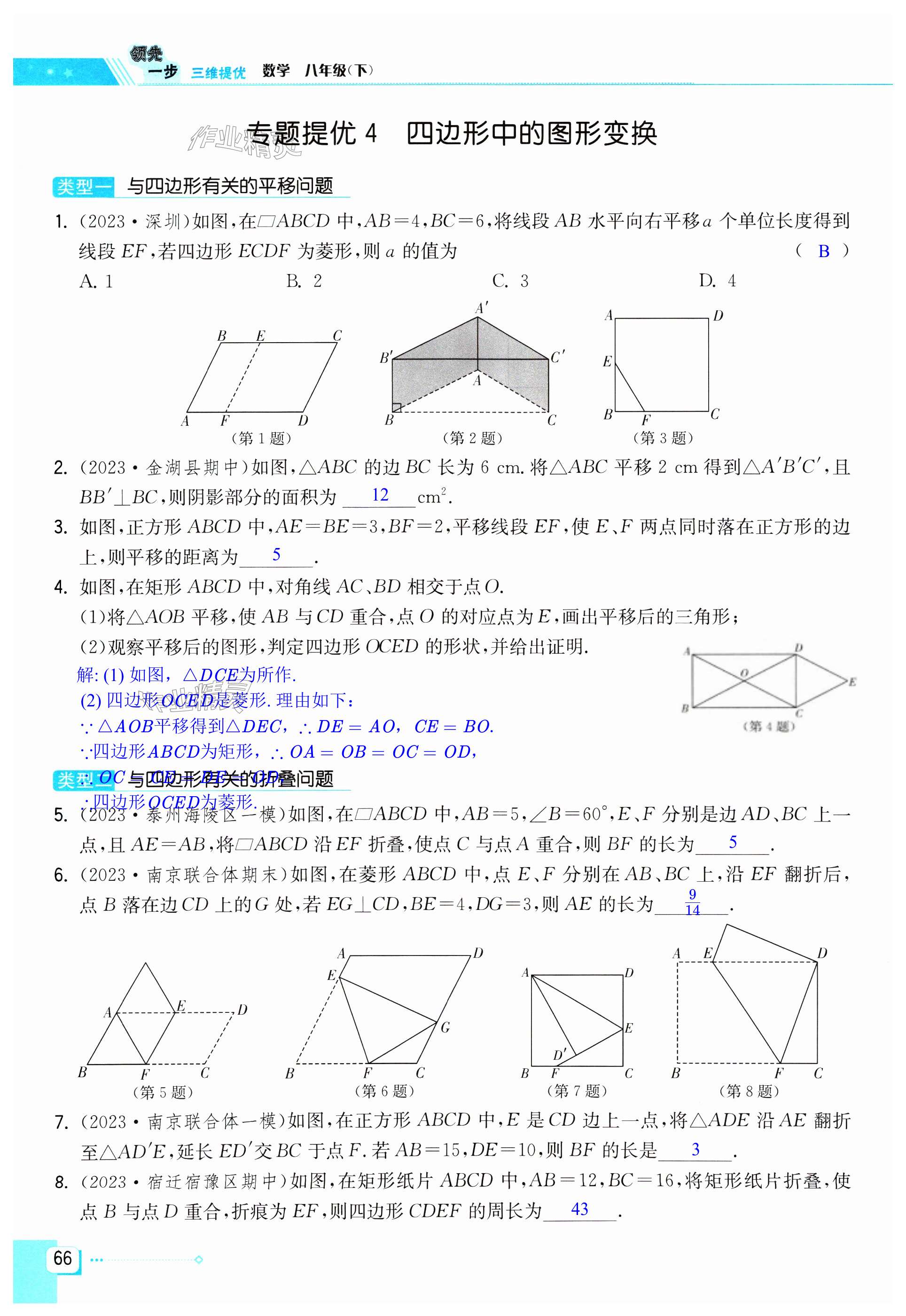 注:目前有些书本章节名称可能整理的还不是很完善,但都是按照顺序排列的,请同学们按照顺序仔细查找。练习册 2025年领先一步三维提优八年级数学下册苏科版 答案主要是用来给同学们做完题方便对答案用的,请勿直接抄袭。