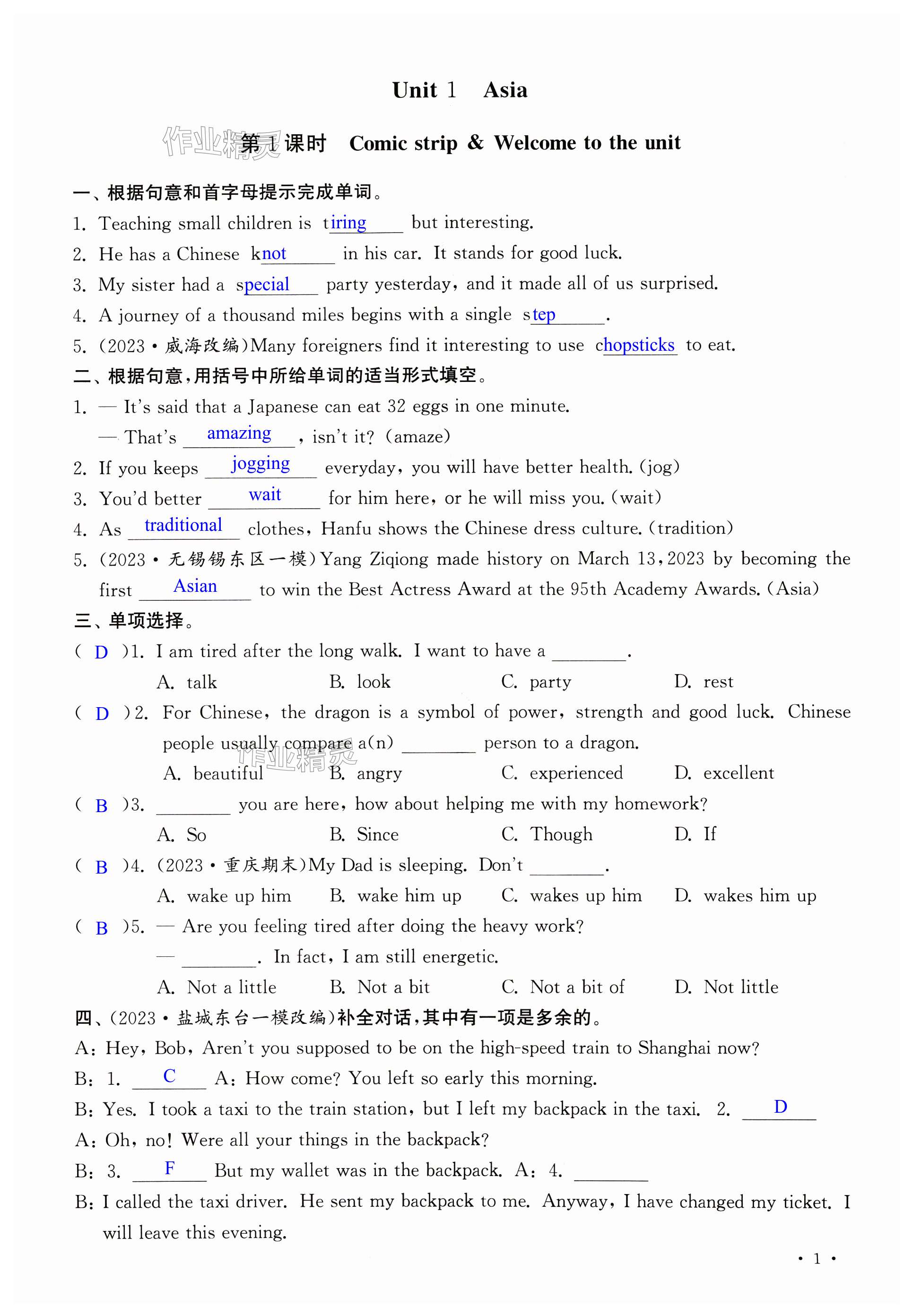 注:目前有些书本章节名称可能整理的还不是很完善,但都是按照顺序排列的,请同学们按照顺序仔细查找。练习册 2025年高效精练九年级英语下册译林版 答案主要是用来给同学们做完题方便对答案用的,请勿直接抄袭。