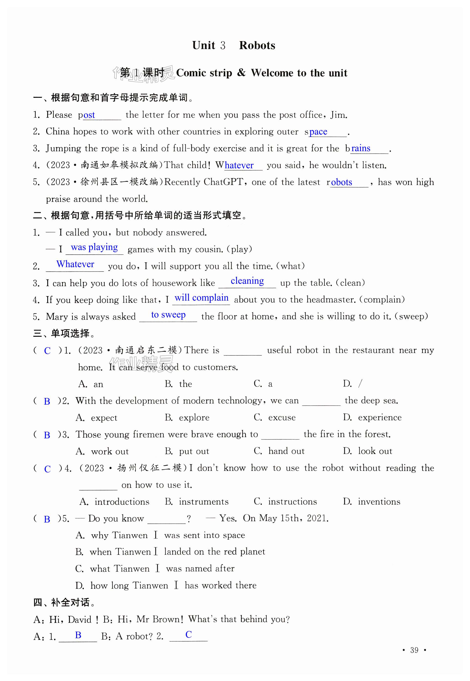 注:目前有些书本章节名称可能整理的还不是很完善,但都是按照顺序排列的,请同学们按照顺序仔细查找。练习册 2025年高效精练九年级英语下册译林版 答案主要是用来给同学们做完题方便对答案用的,请勿直接抄袭。