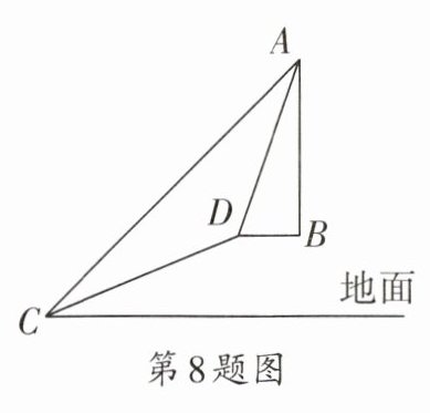 8. 小明参加了今年社区组织的义务植树活动,活动结束后,他发现对面斜坡的平台上有一棵与地面垂直的树AB,他想运用课上学到的相关知识测量这棵树的高度。测量过程如下:如示意图,在点C处测得树顶端A的仰角为45°,先沿着斜坡CD行走13米至坡顶D处,再沿水平方向行走3米到达树底点B处(点A,B,C,D在同一平面内)。已知斜坡CD的坡比为i = 1:2.4,则他测得树AB的高度为____米。