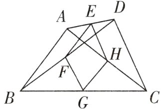 变式:如图,在四边形ABCD中,AB与CD不平行,E,F,G,H分别是AD,BD,BC,AC的中点,连接EF,FG,GH,EH得到四边形EFGH.