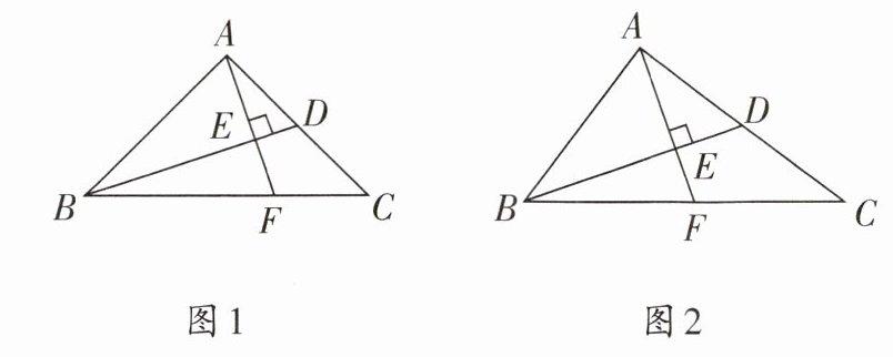 2.(1)如图1,在Rt△ABC中,AB = AC,∠BAC = 90°,D为AC边的中点,AE⊥BD于点E,交BC于F,则BF:FC的值为________.