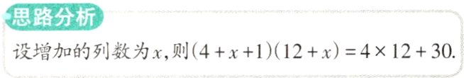 设增加的列数为x,则(4 + x + 1)(12 + x) = 4×12 + 30。