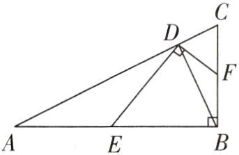 ∴$\angle BDE = 90^{\circ}-\angle BDF=\angle CDF$,$\angle DBE = 90^{\circ}-\angle CBD=\angle C$。