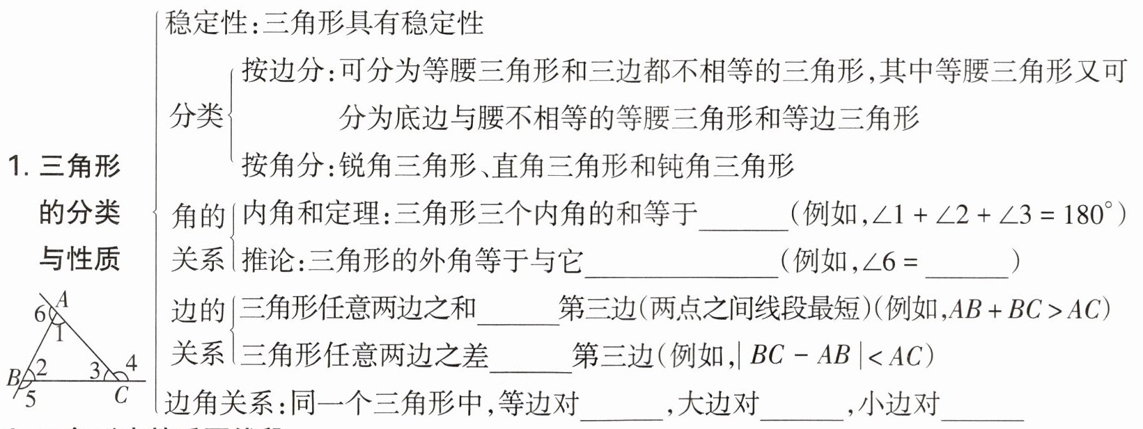 180° 不相邻的两个内角的和 ∠2 + ∠3 大于 小于 等角 大角 小角