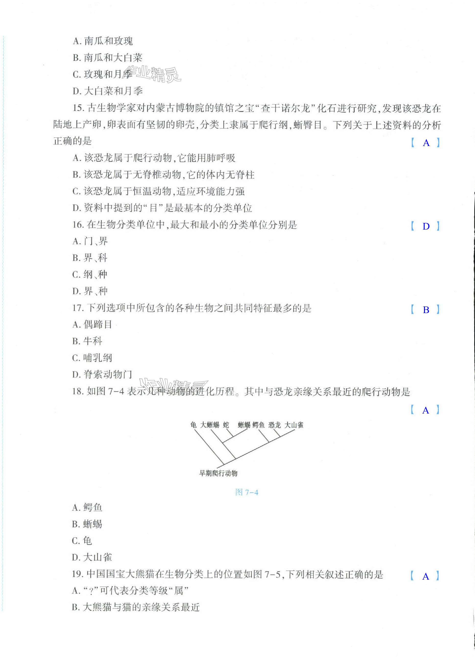 注:目前有些书本章节名称可能整理的还不是很完善,但都是按照顺序排列的,请同学们按照顺序仔细查找。练习册 2024年基础训练大象出版社七年级生物上册人教版 答案主要是用来给同学们做完题方便对答案用的,请勿直接抄袭。