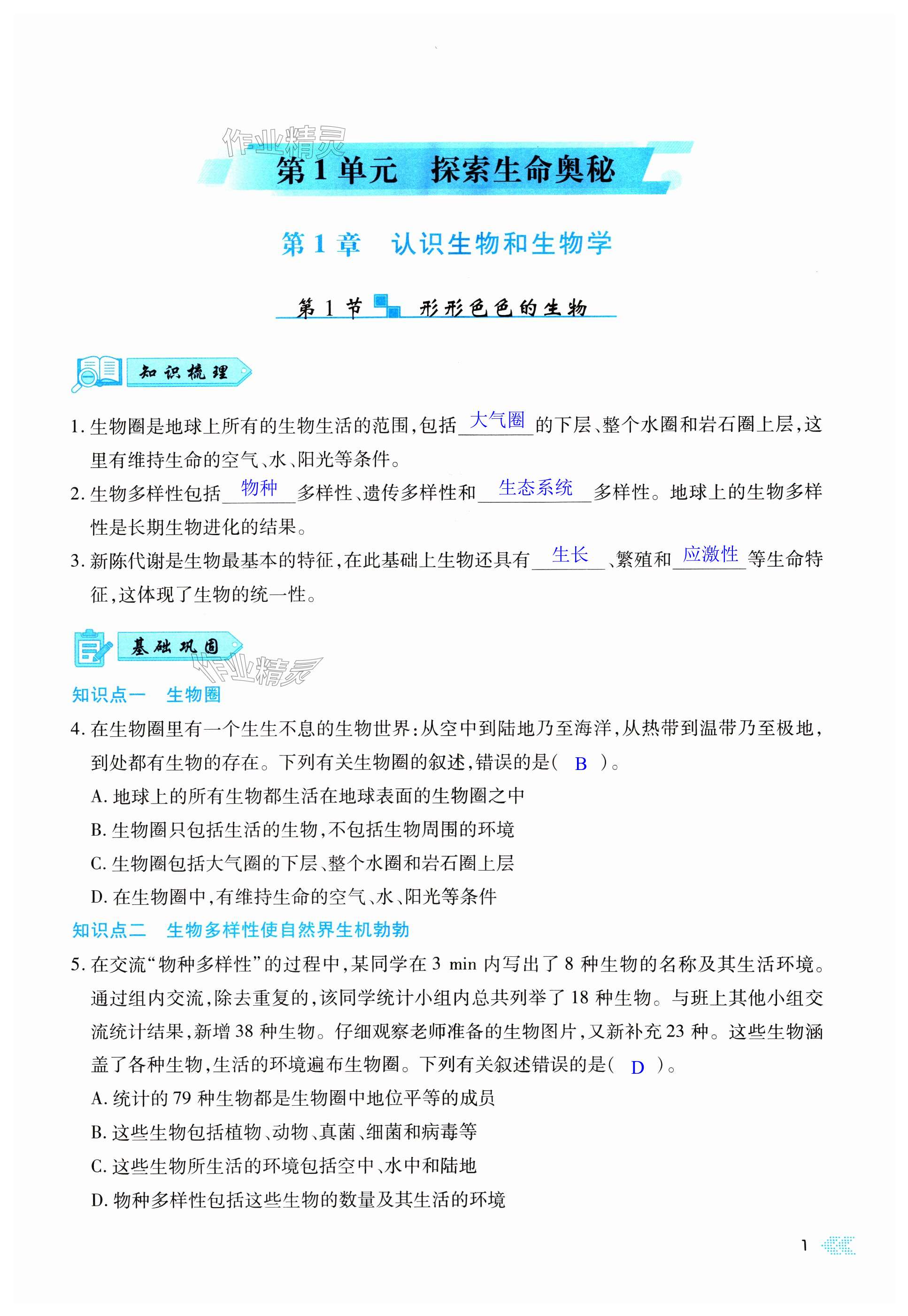 注:目前有些书本章节名称可能整理的还不是很完善,但都是按照顺序排列的,请同学们按照顺序仔细查找。练习册2024年新课程同步学案七年级生物上册北师大版答案主要是用来给同学们做完题方便对答案用的,请勿直接抄袭。