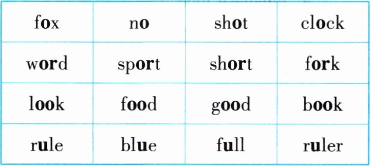 一、朗读下面的单词,在每一行中找出粗体部分读音不一样的单词,并将其圈出来。