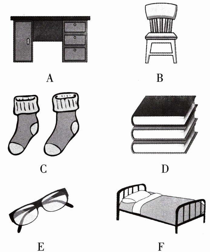 一、下列图片分别对应的是哪些物品呢?请将图片序号填写在对应英文名称前的括号内。