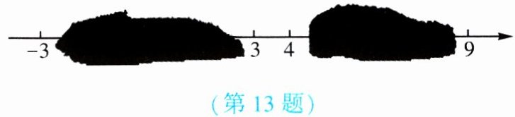 13. (★★) 写作业时,小明不慎将墨水滴在数轴上,根据图中的数值,判断墨迹盖住部分的整数共有【】