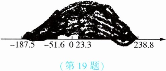 19. (★★★)如图,墨水洒在一个数轴上,由图中标出的数值,求:墨迹盖住的整数共有多少个? 这些整数中有多少对相反数呢?