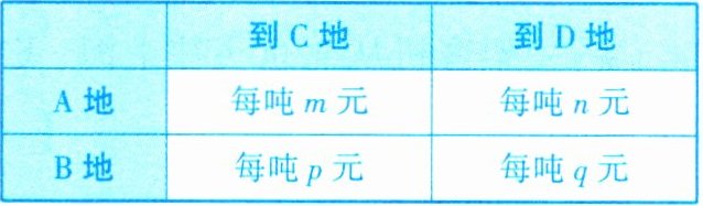 (2)从$A$、$B两地到C$、$D$两地的总运输费用可以表示为______元.