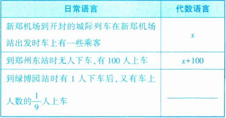 |到郑州东站时无人下车,有$100$人上车|$x + 100$|