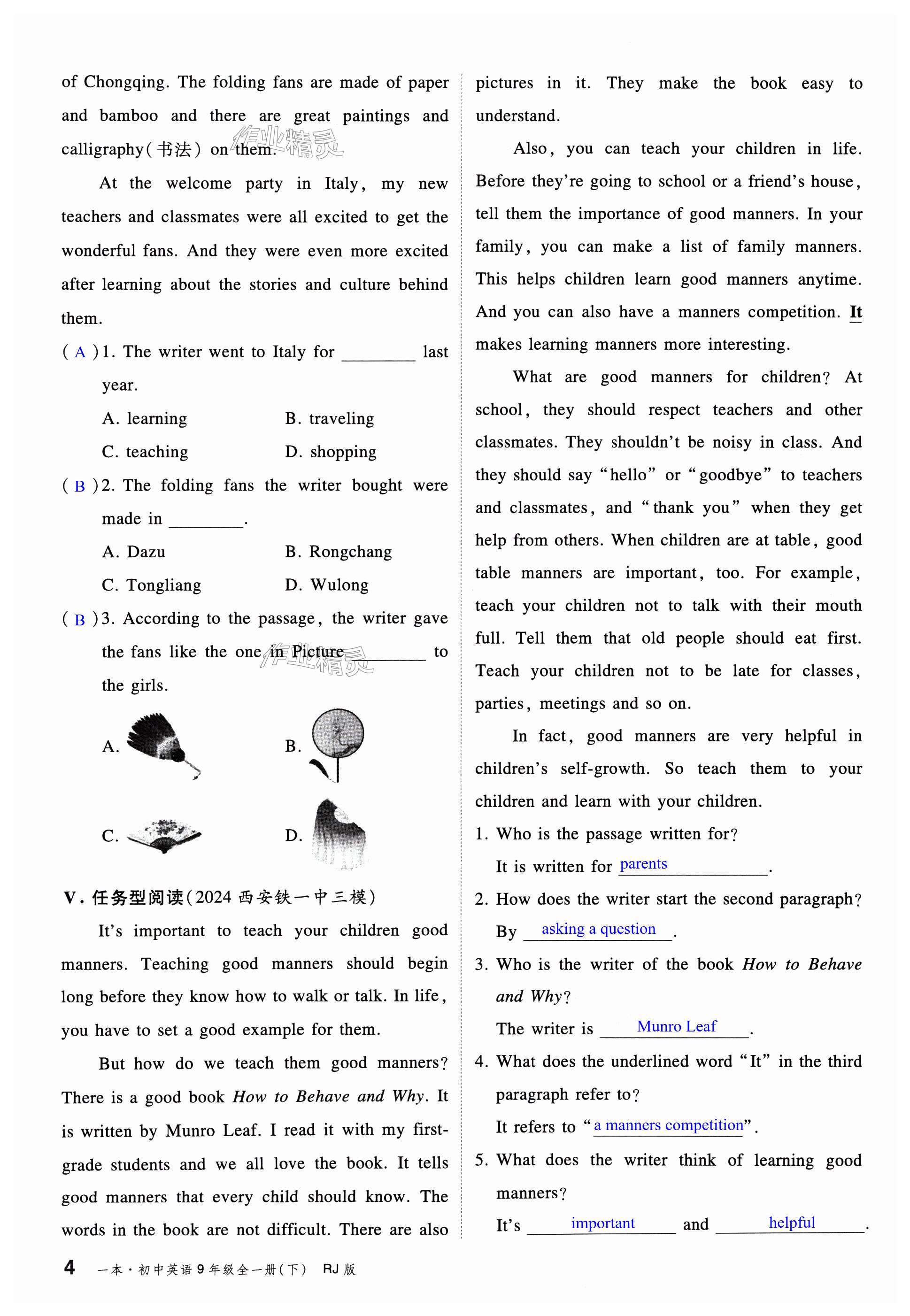 注:目前有些书本章节名称可能整理的还不是很完善,但都是按照顺序排列的,请同学们按照顺序仔细查找。练习册 2025年一本九年级英语下册人教版陕西专版 答案主要是用来给同学们做完题方便对答案用的,请勿直接抄袭。