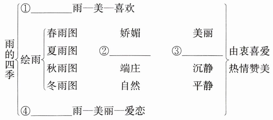 ④______雨 — 美丽 — 爱恋$\end{cases}$