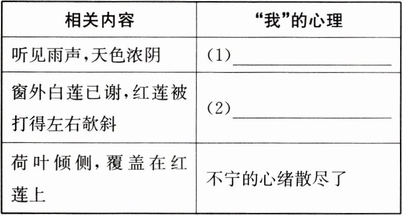 | 窗外白莲已谢,红莲被打得左右攲斜 | (2)______ |