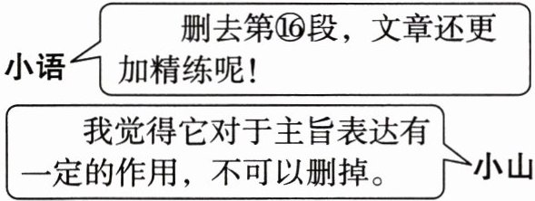 9. 读到第⑯段时,两位同学展开了讨论,请你参与其中,说说你的看法。