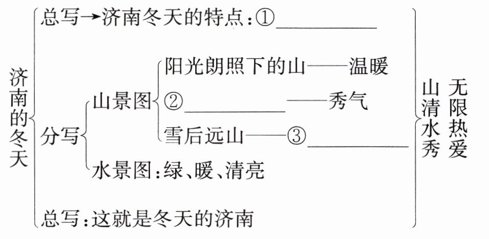 总写→济南冬天的特点:①______