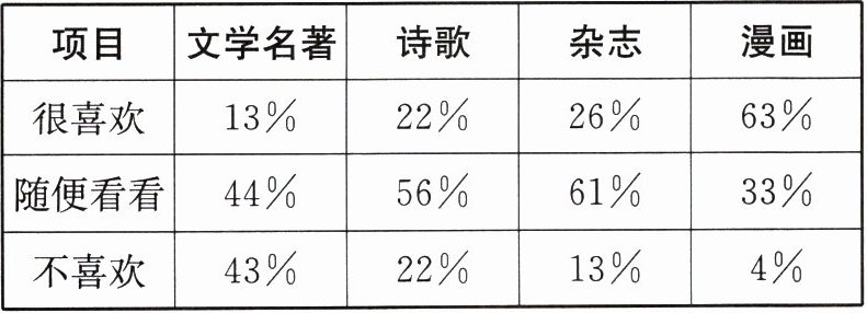 2. 阅读如阳光围绕着我们,如朋友陪伴着我们。你所在的班级正在开展“课外阅读状况调查”活动,请你参与并完成下列任务。