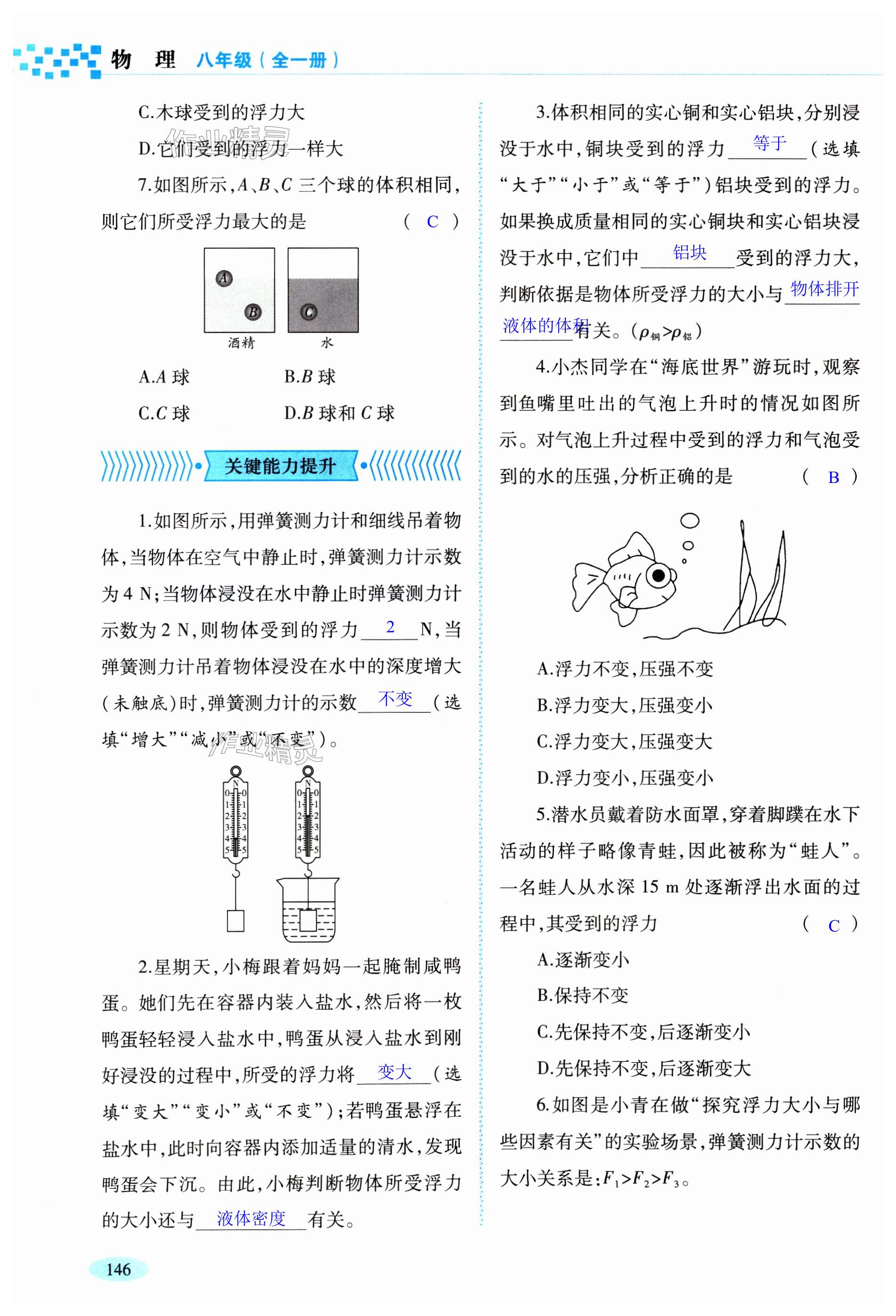 注:目前有些书本章节名称可能整理的还不是很完善,但都是按照顺序排列的,请同学们按照顺序仔细查找。练习册 2024年同步练习河南大学出版社八年级物理全一册沪科版 答案主要是用来给同学们做完题方便对答案用的,请勿直接抄袭。