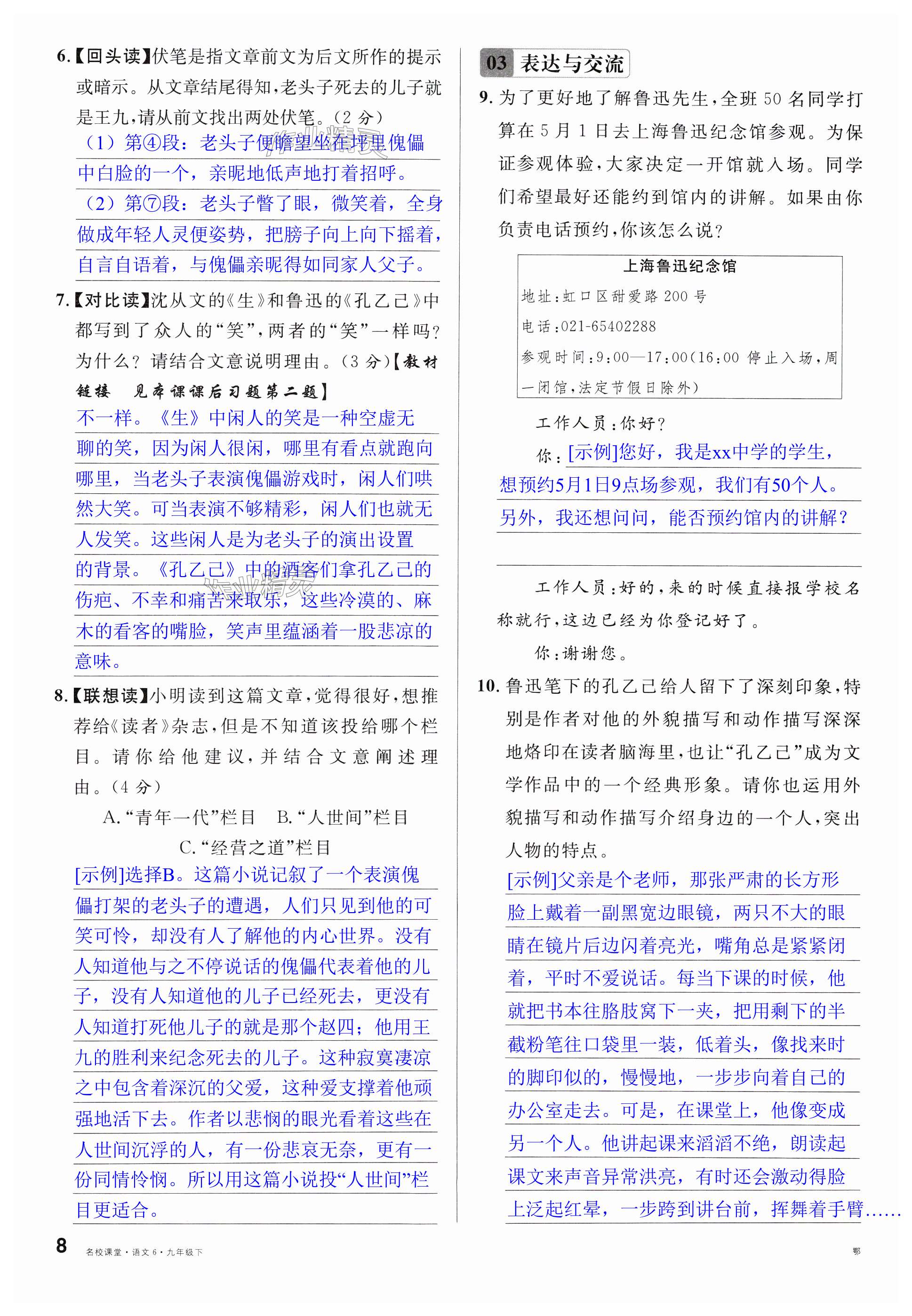 注:目前有些书本章节名称可能整理的还不是很完善,但都是按照顺序排列的,请同学们按照顺序仔细查找。练习册 2025年名校课堂九年级语文下册人教版湖北专版 答案主要是用来给同学们做完题方便对答案用的,请勿直接抄袭。