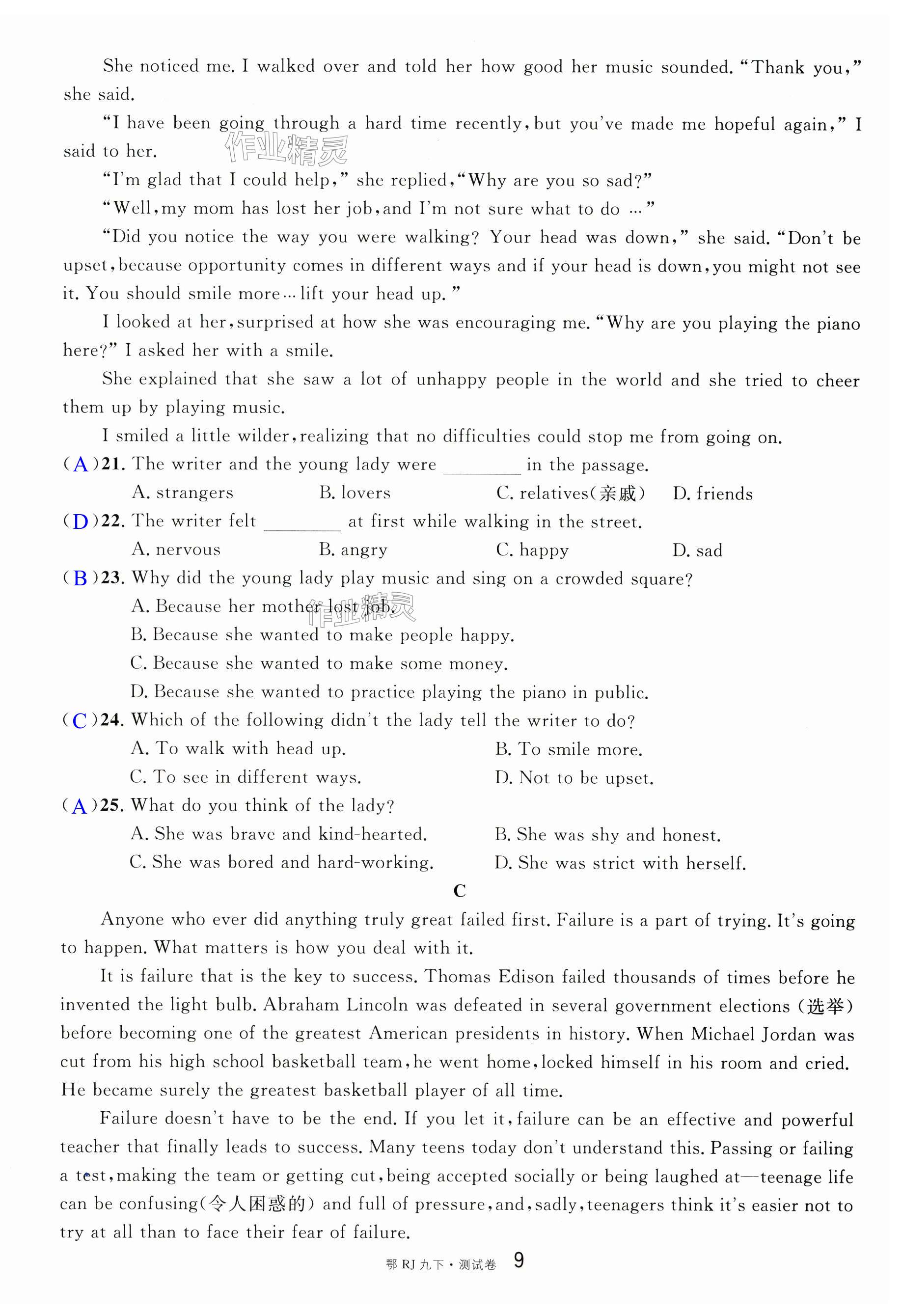 注:目前有些书本章节名称可能整理的还不是很完善,但都是按照顺序排列的,请同学们按照顺序仔细查找。练习册 2025年名校课堂九年级英语下册人教版湖北专版 答案主要是用来给同学们做完题方便对答案用的,请勿直接抄袭。