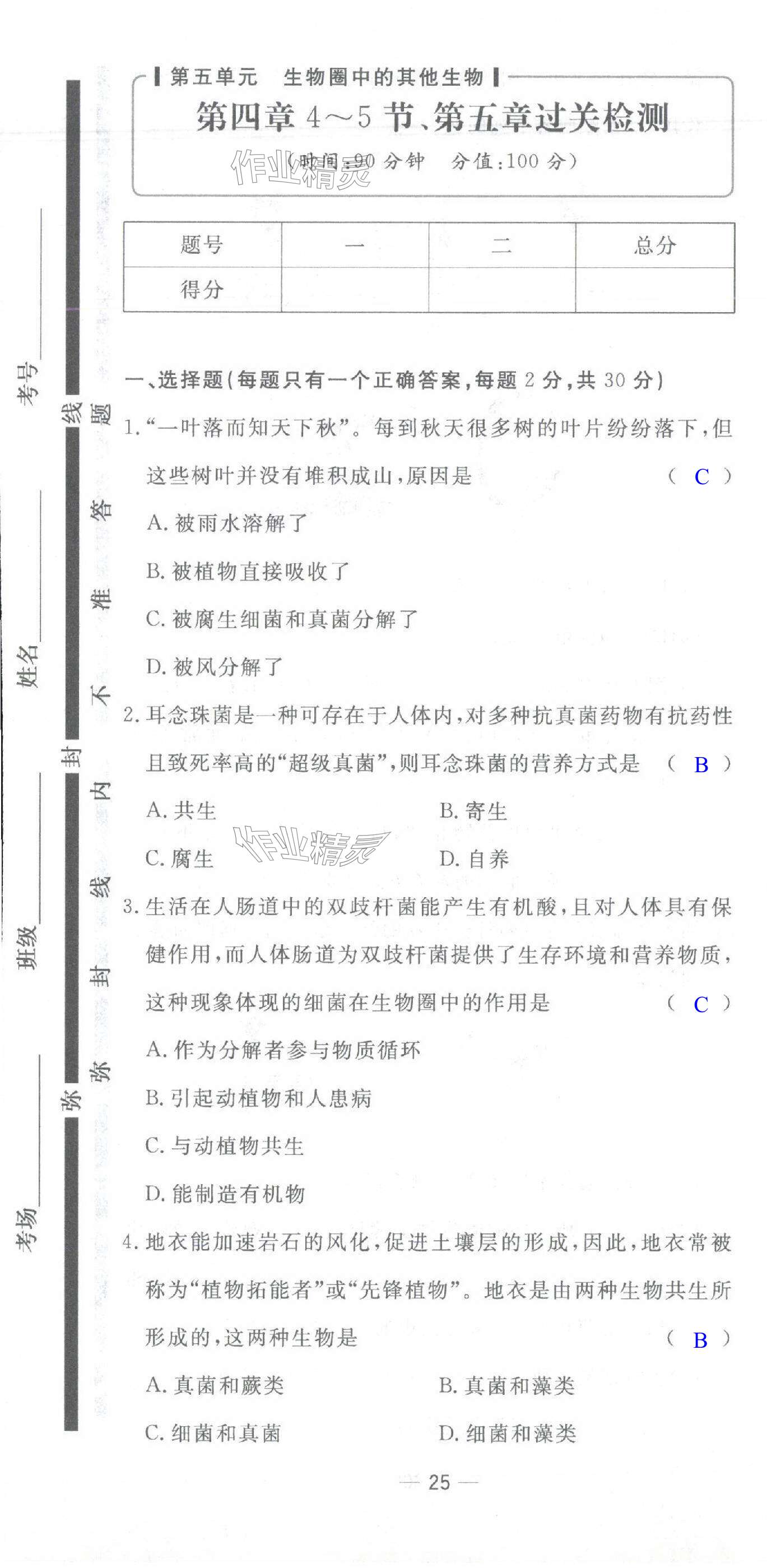 注:目前有些书本章节名称可能整理的还不是很完善,但都是按照顺序排列的,请同学们按照顺序仔细查找。练习册 2024年智慧课堂密卷100分单元过关检测八年级生物上册人教版 答案主要是用来给同学们做完题方便对答案用的,请勿直接抄袭。