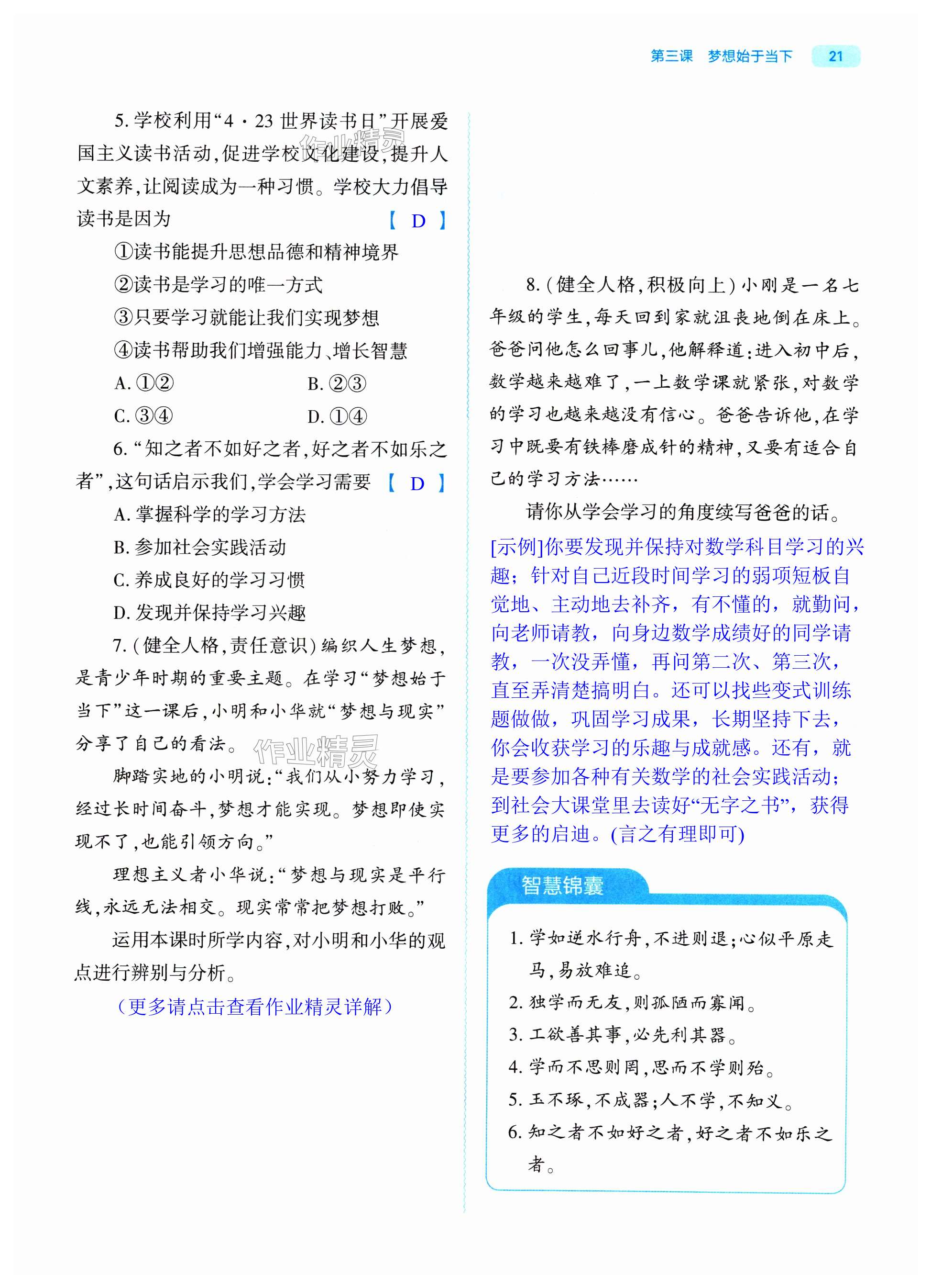 注:目前有些书本章节名称可能整理的还不是很完善,但都是按照顺序排列的,请同学们按照顺序仔细查找。练习册 2024年基础训练大象出版社七年级道德与法治上册人教版 答案主要是用来给同学们做完题方便对答案用的,请勿直接抄袭。