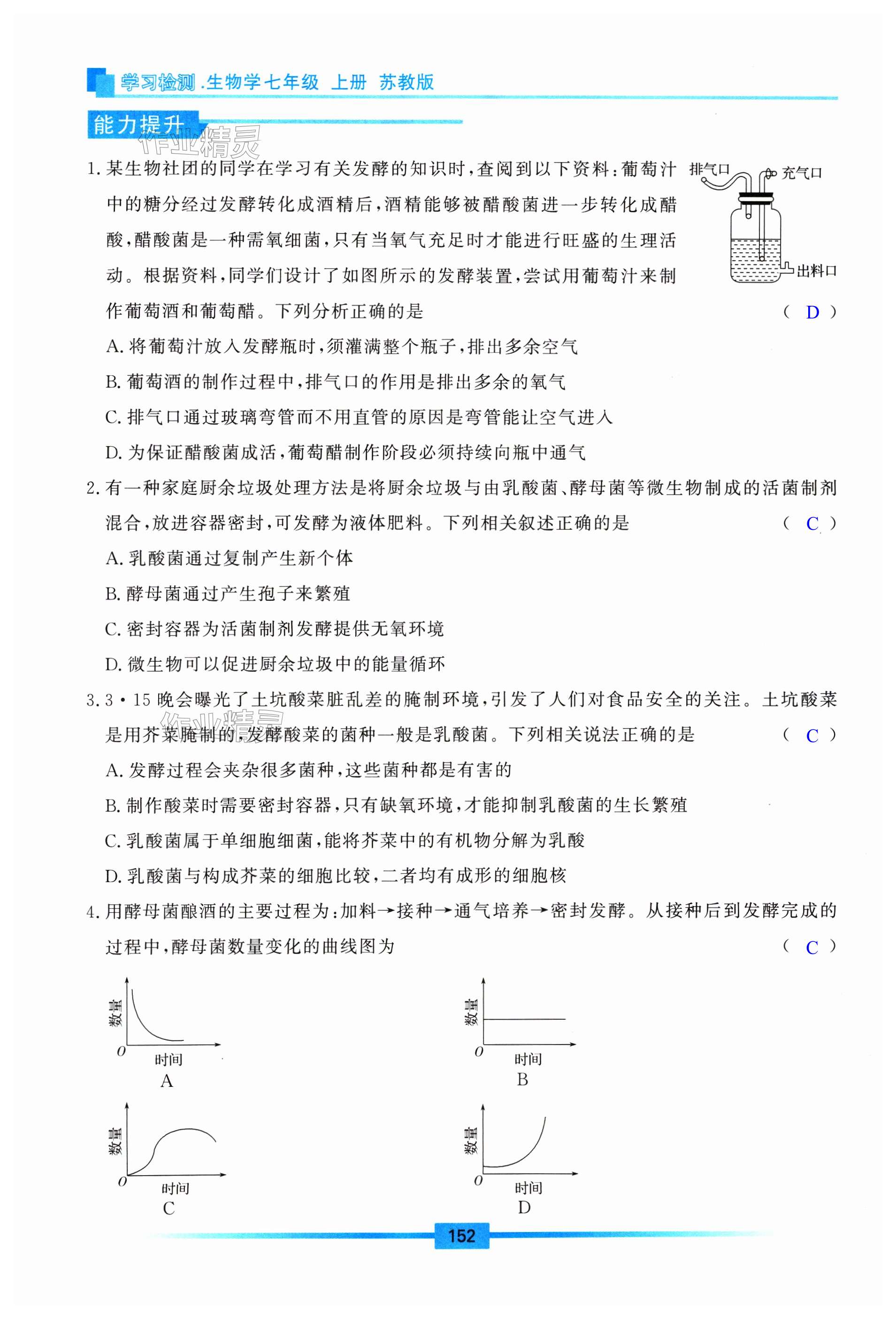 注:目前有些书本章节名称可能整理的还不是很完善,但都是按照顺序排列的,请同学们按照顺序仔细查找。练习册 2024年学习检测七年级生物上册苏教版 答案主要是用来给同学们做完题方便对答案用的,请勿直接抄袭。