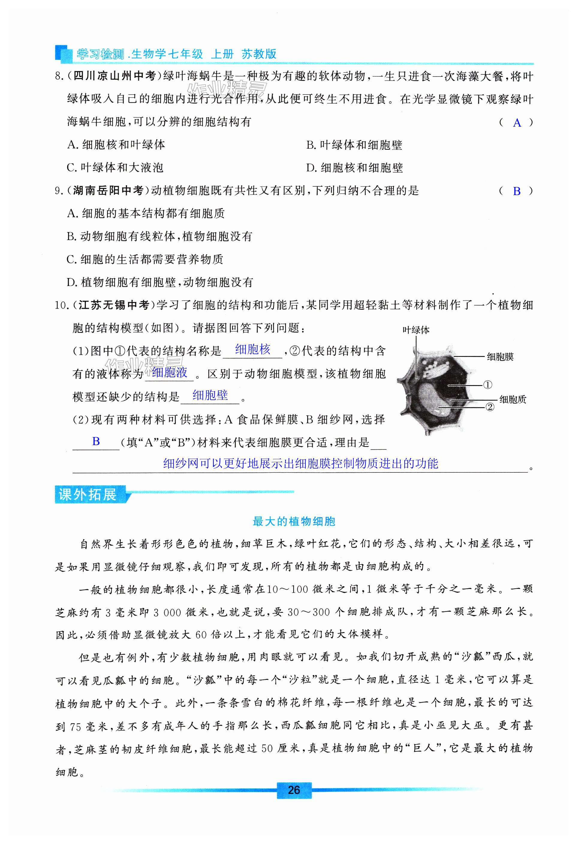 注:目前有些书本章节名称可能整理的还不是很完善,但都是按照顺序排列的,请同学们按照顺序仔细查找。练习册 2024年学习检测七年级生物上册苏教版 答案主要是用来给同学们做完题方便对答案用的,请勿直接抄袭。