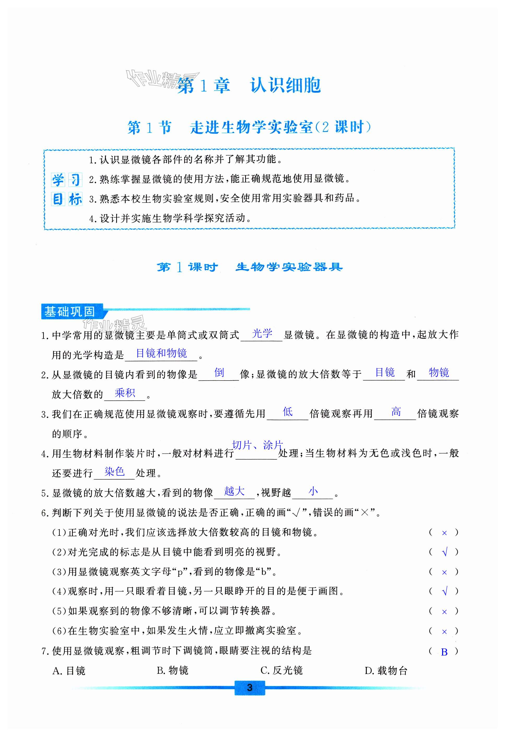 注:目前有些书本章节名称可能整理的还不是很完善,但都是按照顺序排列的,请同学们按照顺序仔细查找。练习册 2024年学习检测七年级生物上册苏教版 答案主要是用来给同学们做完题方便对答案用的,请勿直接抄袭。