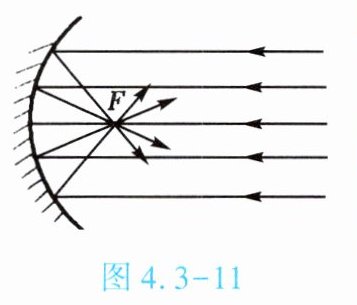 (3)如图 4.3 - 11 所示,平行光入射到凹面镜上,反射光会聚到 F 点,这个点是凹面镜的______。