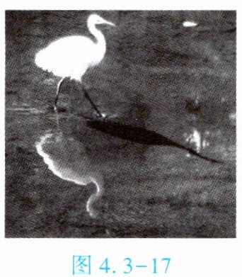 2. (★★)(2023·山西改编)一只白鹤静立在平静的水中,在岸边可以看到白鹤的两个“影”——影子和倒影,如图 4.3 - 17 所示。下列分析$\boldsymbol{不正确}$的是【 】