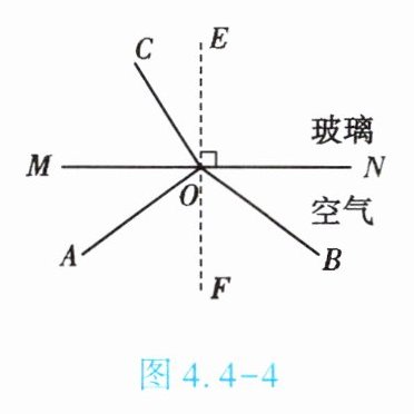 4. (★★)(2023·北京)一束单色光从空气斜射入玻璃中的情境如图4.4 - 4所示。则下列说法正确的是【 】