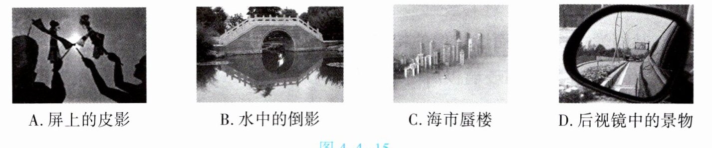 3. (★★)如图4.4-15的光现象中,由于光的折射形成的是【 】