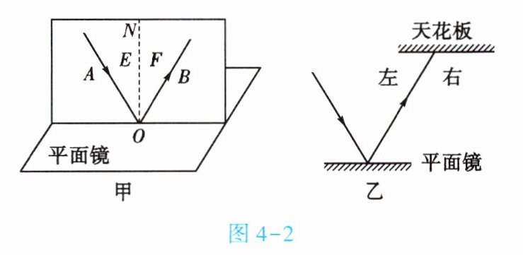 (5)如图4-2乙所示,一束光经水平放置的平面镜反射后在天花板上形成光斑,水平向右移动平面镜,观察到光斑位置的变化情况是______。