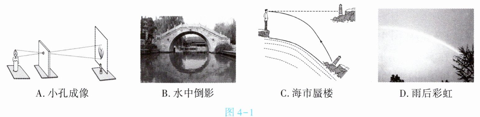 1. (★★)如图4-1所示的光现象中,能用光的直线传播解释的是【 】